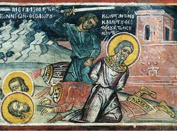 K vítězství muslimské armády bagdádského chalífa nad Byzantinci v Amoriu v horní Frýgii (u dnešního Hisarköy v Turecku) dopomohl místní zrádce, odpadlý Baditze. Muslimové v roce 838 město rozbořili a téměř všechny obyvatele pozabíjeli. Ze 42 významných osobností udělali své zajatce. Mezi nimi byli vysoce postavení velitelé i úředníci a vysocí představitelé města, které odvlekli do Sýrie. Snad z důvodu jejich schopnosti a zkušenosti nebyli hned zabiti. Po sedmi letech věznění v islámské věznici při velmi špatné stravě, občas i znečištěné, se věznitelům žádným způsobem nepodařilo přinutit je ke zřeknutí se své křesťanské víry a ke konvertování k islámu. Odvedli je proto v roce 845 k řece, kde je mečem pozabíjeli.