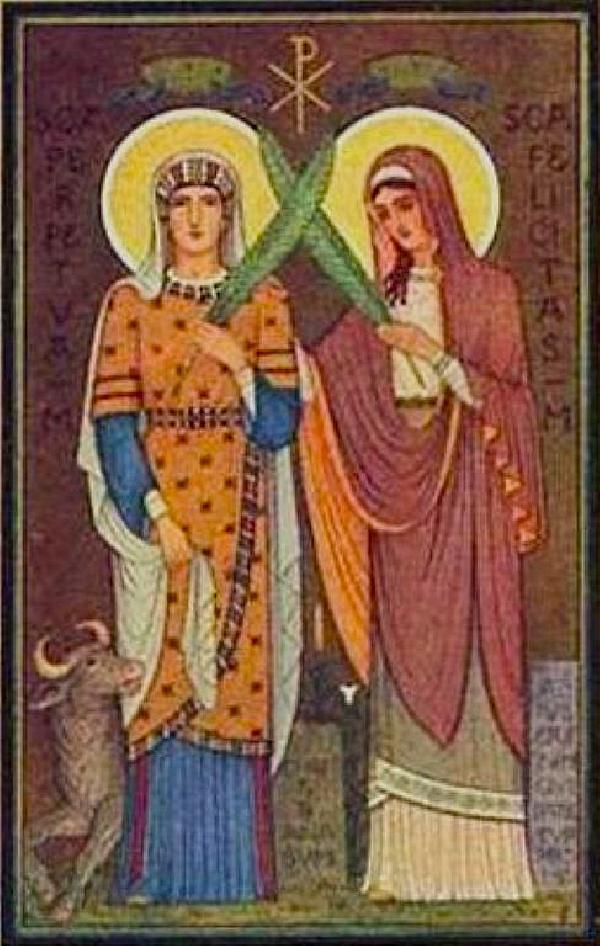 Obě byly mladé matky, zajaté v Kartágu za císaře Severa. Perpetua kojila své nemluvně ve vězení a otrokyně Felicita tam před popravou porodila holčičku. Byly pokřtěny až ve vězení a na smrt šly s radostí. Byly zmrskány, pak na ně byla vpuštěna divoká kráva, která je vláčela po zemi, a pak byly usmrceny mečem.ŽIVOTOPIS PRO MEDITACI